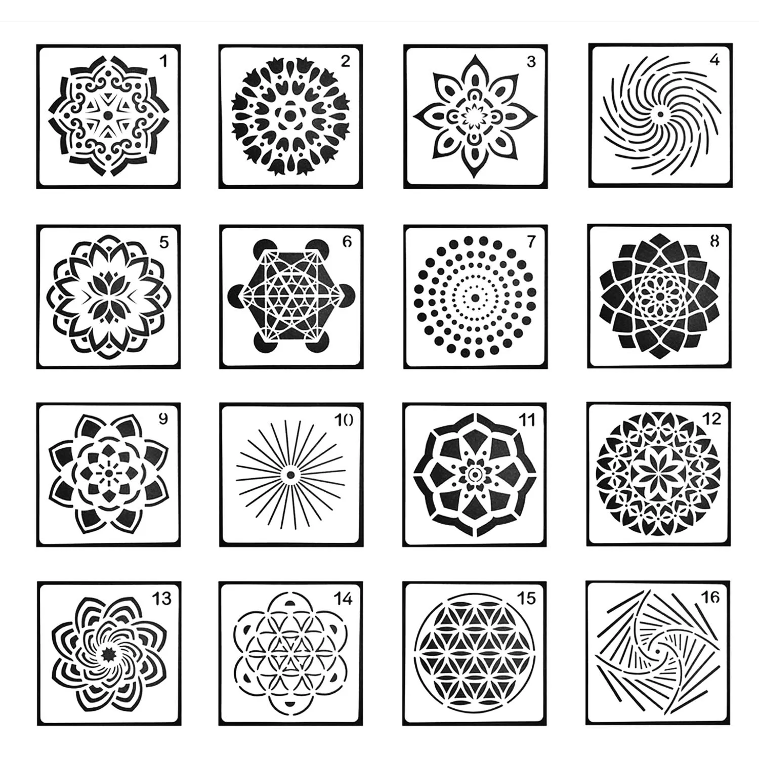 16 Pochoir Mandala iSuperb 16 pièces Pochoir Mandala Pochoir Peinture Mandala Dotting Pochoirs Modèle Painting Stencils de DIY Murale Meuble Décoration azzo.com.br