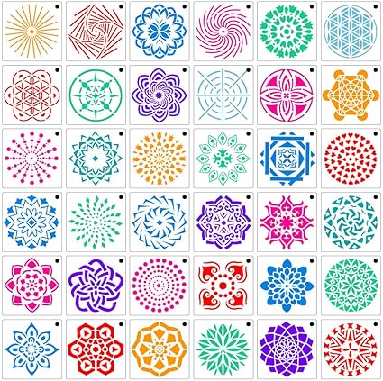 Joeleli Lot de 36 Pochoirs Peinture Mandala pour Dessin Bricolage, Peinture Pochoir Réutilisables pour Décoration de Mur, Meuble, Rochers et Tissu, Plastique Pochoir Stencil Dessin Peinture: Amazon.fr: Cuisine & Maison