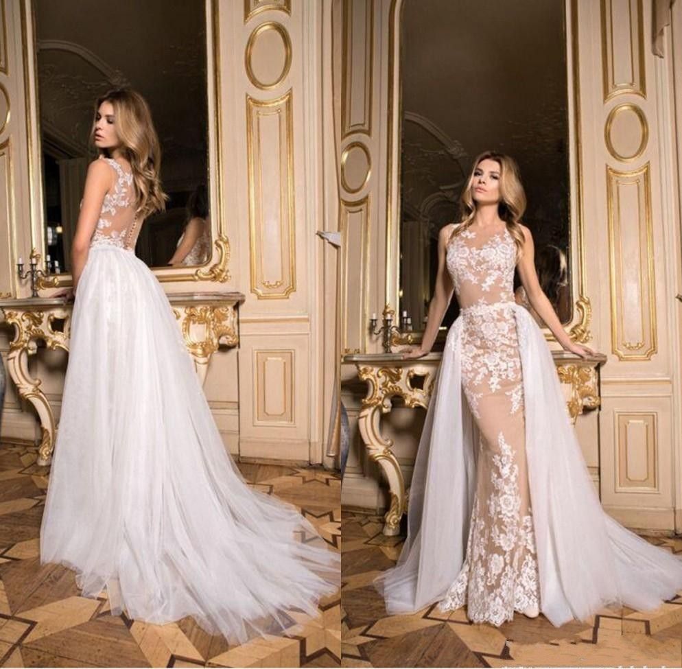 Luxury Lace Mermaid Wedding Dresses Detachable Skirt 2020 Illusion Boat Neck Applique Satin Court Train Bridal Dress Lebanon Wedding Dresses Aliexpress